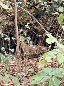 कुछ ही पलों बाद तेंदुआ जंगल की घनी झाड़ियों में चला गया और देखते ही देखते आंखों से ओझल हो गया। इस रोमांचक मुलाकात ने पर्यटकों की सफारी को यादगार बना दिया।