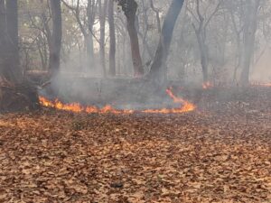 बेतिया/वाल्मीकिनगर:- वाल्मीकि टाइगर रिजर्व (वीटीआर) के घोठवा टोला गांव से सटे जंगलों में शुक्रवार की देर शाम भीषण आग लगने से पूरे इलाके में हड़कंप मच गया। फायर सीजन की शुरुआत में ही सामने आई इस घटना ने वन विभाग की तैयारियों पर गंभीर सवाल खड़े कर दिए हैं। आग तेजी से फैलते हुए गांव की सीमा तक पहुंच गई थी, लेकिन समय रहते वनकर्मियों की तत्परता से एक बड़ा हादसा टल गया।