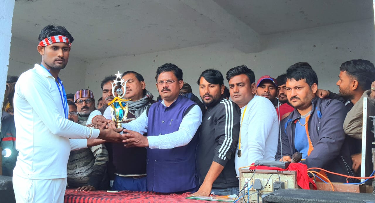 शानदार जीत हासिल की । गौरतलब हो कि मैन ऑफ़ द मैच औरंगजेब बने तथा मैन ऑफ़ द सीरीज मोहम्मद इरशाद को घोषित किया गया। विजेता और उपविजेता टीम को ट्रॉफी के साथ मेडल पहनाकर डॉ एस . कुमार और मझौलिया मुखिया सत्य प्रकाश ने सम्मानित किया। अंपायर की भूमिका प्लांटी पांडे राजन रजक तथा गोलू श्रीवास्तव ने निभाई तो कमेंटेटर की भूमिका प्रदीप कुमार सिंह और वीरू सिंह ने की। मौके पर दर्शकों से स्टेडियम भरा रहा ।
