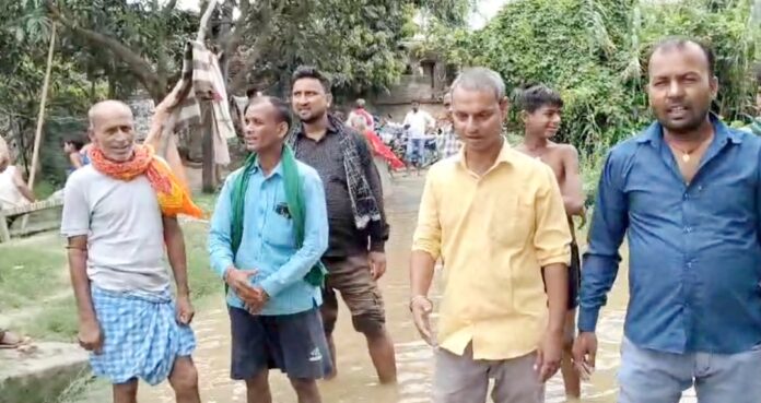 मसान नदी के पानी से दर्जनों गांव हुआ जलमग्न, जलसंसाधन विभाग के नही पहुँचे कोई भी अधिकारी।